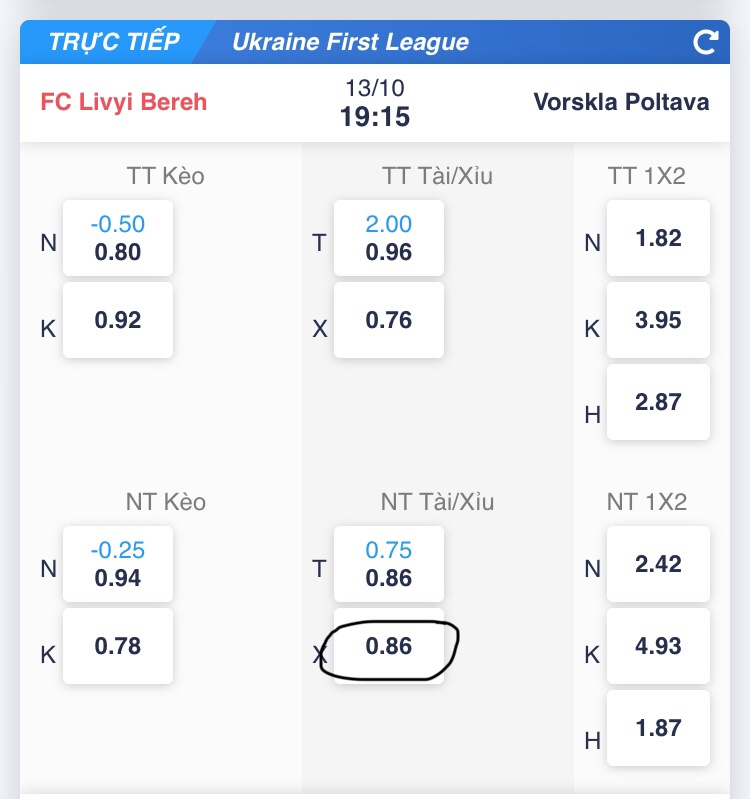 2. Đính kèm ảnh chụp màn hình hiển thị tỷ lệ cược, ghi rõ đội chọn.