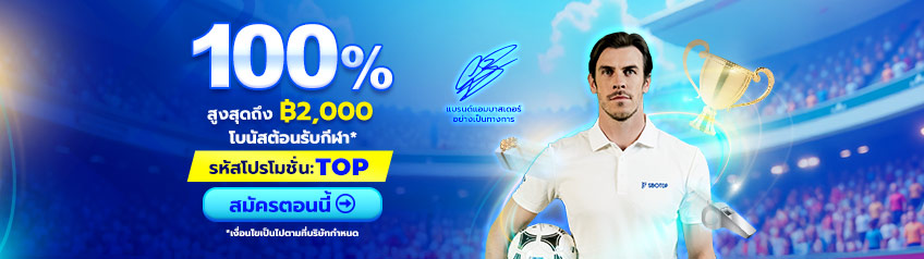 เข้าร่วมเลยวันนี้ แล้วเคลมโบนัสต้อนรับกีฬา 100% ของคุณ ด้วยรหัสโปรโมชั่น TOP!